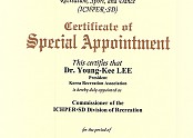Selection of our association’s Young Kee Lee as Recreation Commissioner of ICHPER.SD ICHPER.SD (Inte…